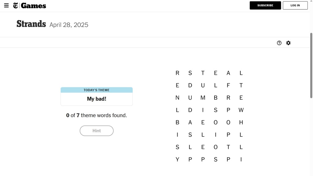 For today, April 28thโs puzzle, like yesterday, the topic of the puzzle isnโt as hard to get as other days. The theme for todayโs Strands is โMy bad!โ. With themes like todayโs, itโs good to remember to take each word seriously, especially โbadโ, and note any intentional spacing or changes. There are seven words, including the Spangram in todayโs Strands, If you want hints on what the Spangram is, we have provided one below: