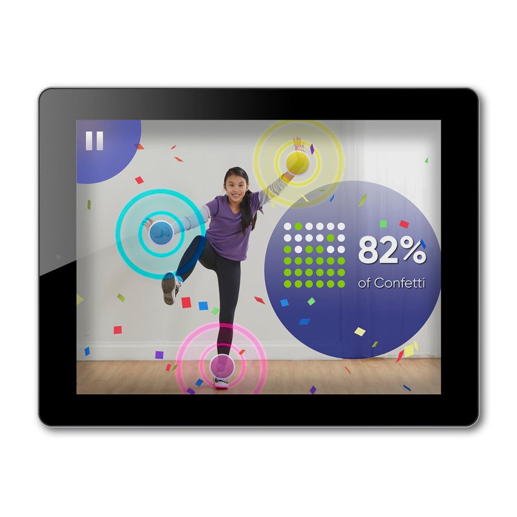 “No mat? That’s right! Take moves from the mat to the screen with the Twister Air game! In this app-enabled, augmented reality spin on the Twister game, the party extends onto a player’s smart device. Players reach, clap, swipe, and strike crazy poses to music beats as they scramble to match their wrist and ankle bands to the colored spots on screen. Earn points for every spot hit while you twist in the air like you just don’t care!
