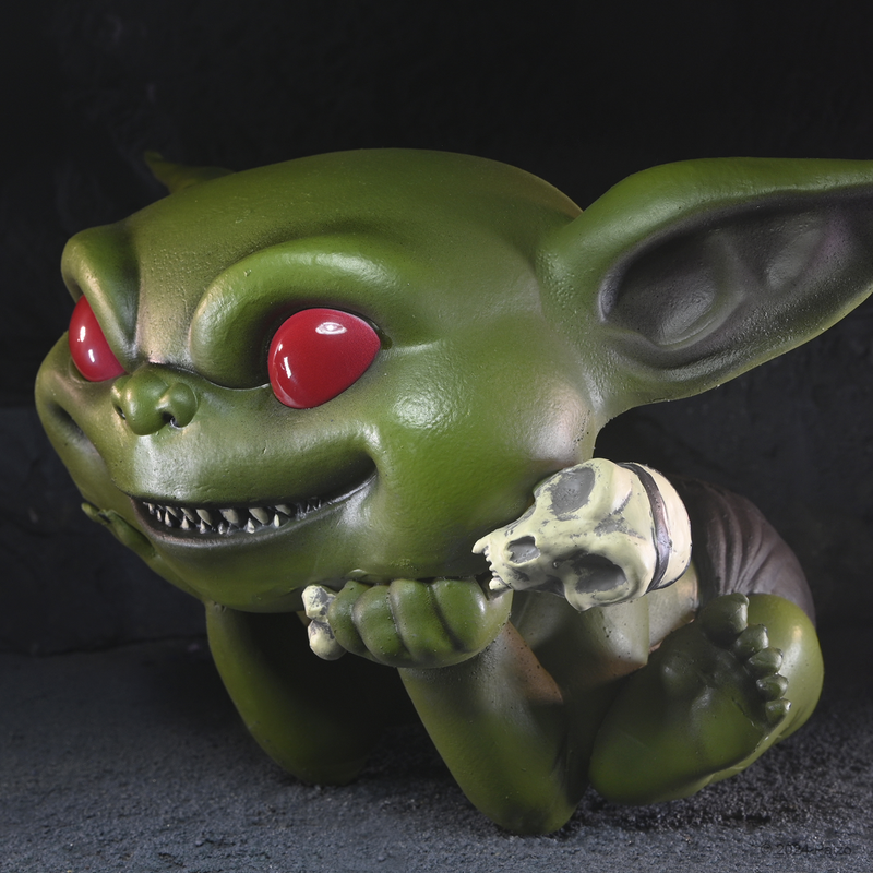 Like other figures in the line, the Baby Goblin Life-Sized figure is hand-painted and made of soft foam. The baby goblin stands (or perhaps more appropriately sits) 8 inches tall, although at least a few of those inches are ears.