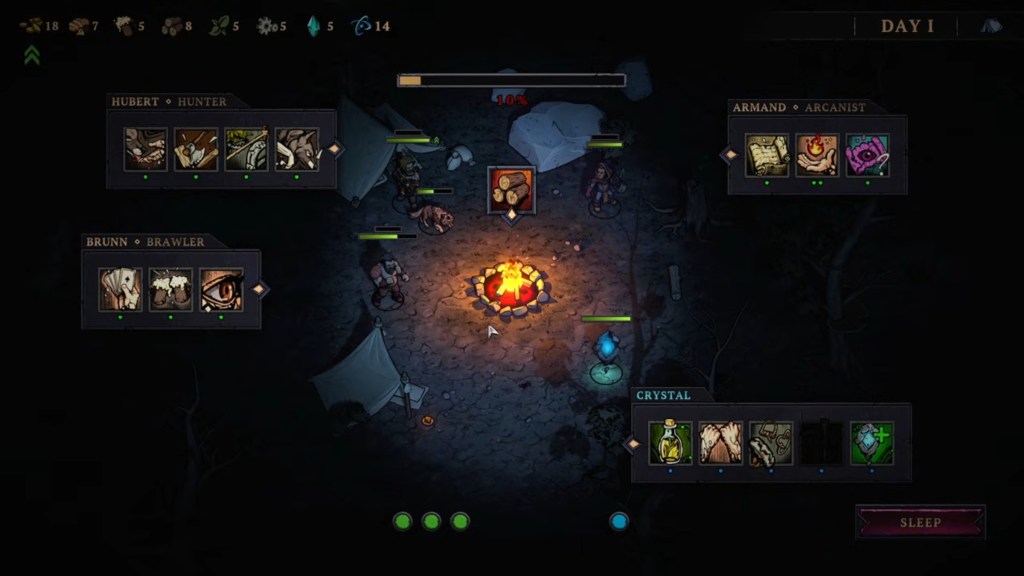 With its distinct band of adventurers, each with clear class archetypes, each adventure can feel like an excuse to play along with a mini-campaign. The dangers posed by the Blight, especially with the corruption that can spread during the nights and if dark tidings happen in the dark, give it all a fun sense of scope that doesn’t feel out of place next to plenty of fantasy adventures. This is somewhat undercut by the visuals that quickly become repetitive, with several similar enemy types repeating on separate encounters. That storybook quality doesn’t necessarily translate to the more stunning graphics or overwhelming effects, but the underlying art style and music direction make for an easily compelling space.