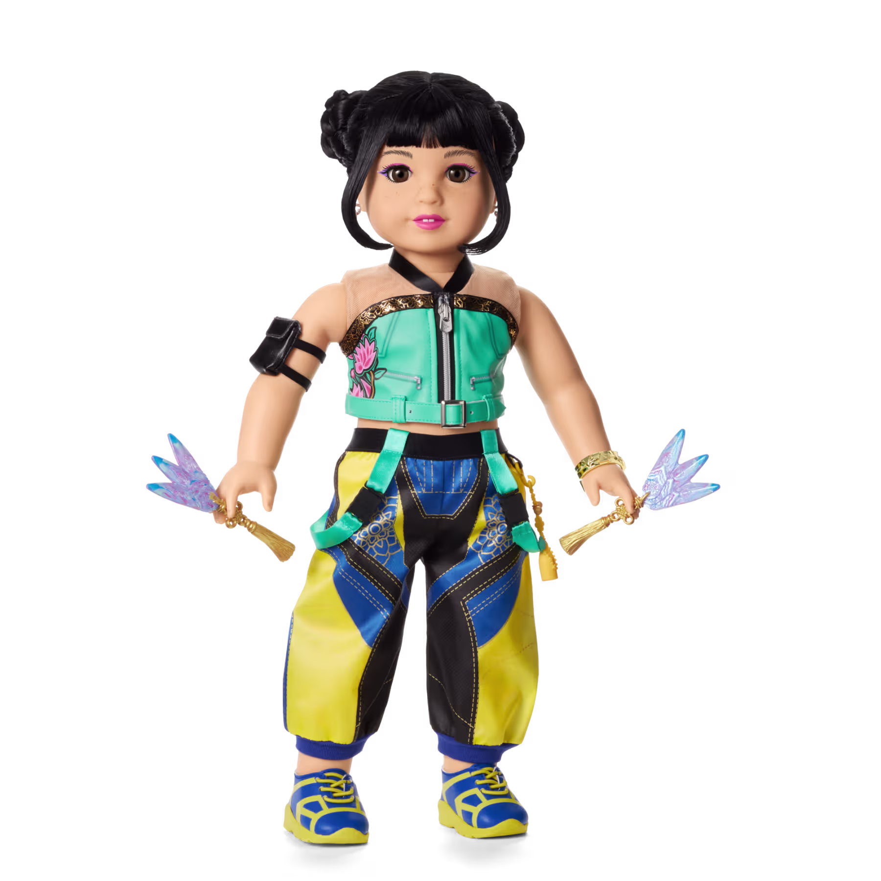 Rumi, Mira, and Zoey look like they were always meant to be American Girls—only with a $165 price tag each. You’ll appreciate the faux leather, zippers, and metal buckles that replicate the outfits of your favorite fictional K-pop girl group. Each HUNTR/X American Girl doll also includes their awesome demon hunting weapons; Rumi’s Sain-Geom sword, Mira’s Gok-Do curved moon sword, and Zoey’s Shin-Kal knives. As one astute X user pointed out, are these the first American Girl dolls to have weapons? Possibly, and we wouldn’t want it any other way.