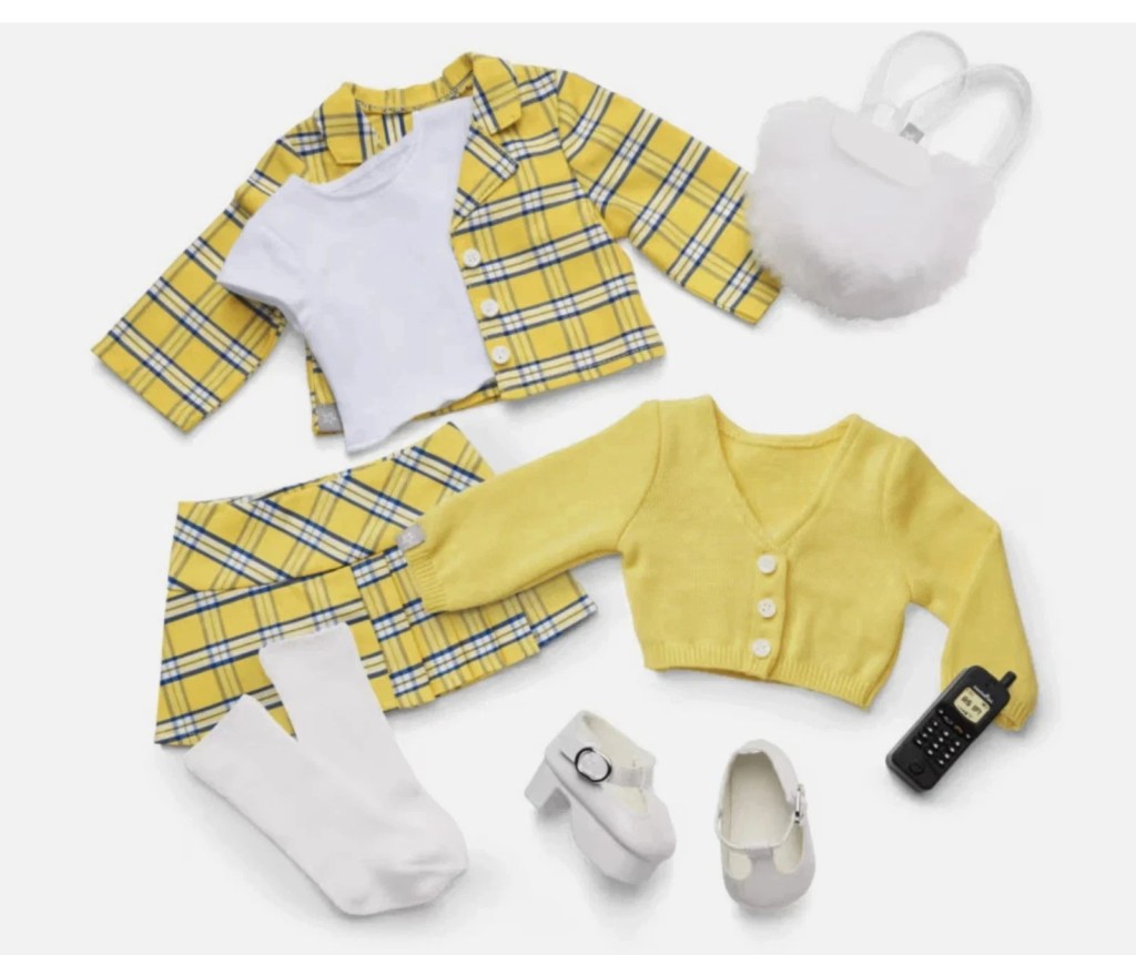 There was also a Clueless collaboration last year that brought main character Cher’s and best friend Dionne’s outfits to the American Girl wardrobe, bringing a 90s flair to the frequently historic fashion senses of the other dolls. Cher’s iconic yellow skirt and jacket combo even includes a handheld cellphone, the epitome of high end fashion for teens in the 90s. Dionne’s black and white look includes one too, and her fashionable white statement hat with the black ribbon and red flower. Again, like the Wicked ones, Cher’s is sold out on the website, but still available on eBay for about $150. You can still get Dionne’s outfit on the original site for a discounted price of $56, down from the original price of $80. If you’re a 90s fan and a doll collector, I wouldn’t let this sale price slip by.