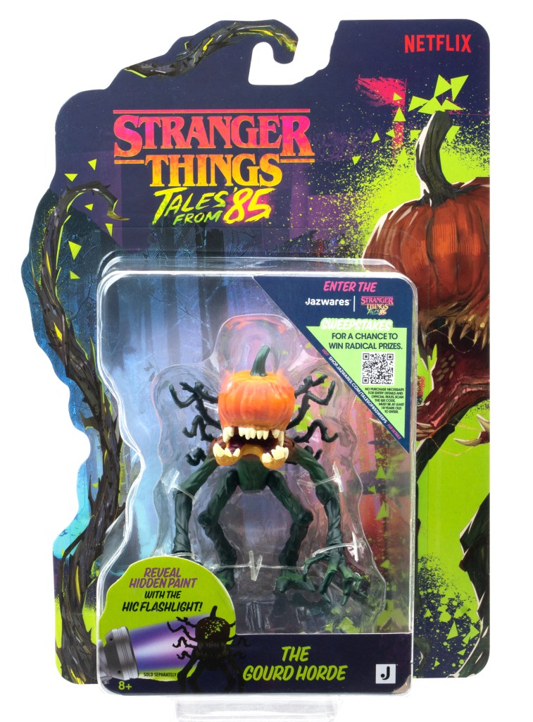 The other new creature in the toyline is The Gourd Horde, which is described as a possessed pumpkin. Even though it’s an ordinary pumpkin that’s been transformed, it has clearly been given a nightmare makeover, with straggly vines in the back, gnarly teeth, and full-on vine legs and arms. Being that this is called The Gourd Horde, one might expect there to be a host of terrifying Pumpkins involved in whatever sequence this is part of.