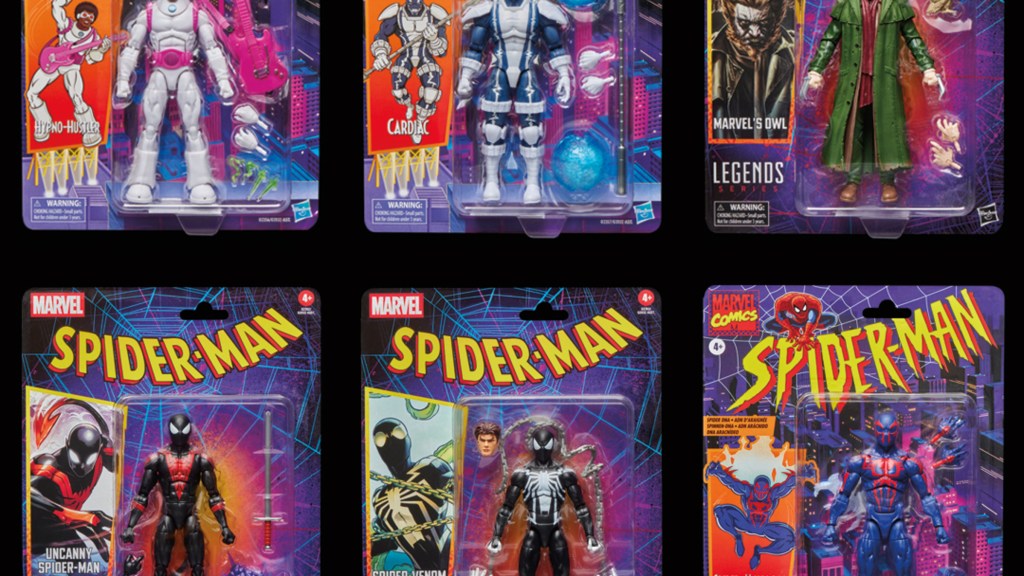 Hypno-Hustler, Marvel’s Owl, Uncanny Spider-Man (Nightcrawler), Spider-Venom, Spider-Man 2099, and Cardiac are all part of the retro wave.