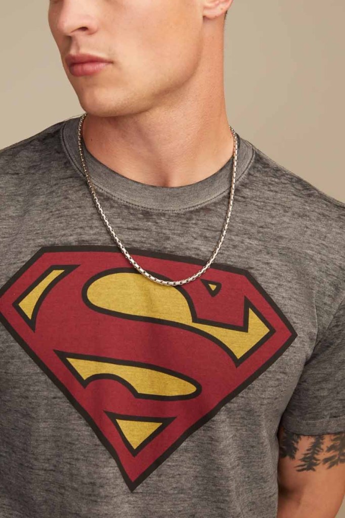 Not all heroes wear capes โ some just wear very cool t-shirts. From the limited-edition Superman x Lucky Brand collection, the cotton/poly blend crew neck tee features Supermanโs iconic emblem on the chest and Luckyโs signature clover logo embroidered on the sleeve. Perfect for the Superman fan who likes to keep it more low-key, Clark Kent style.