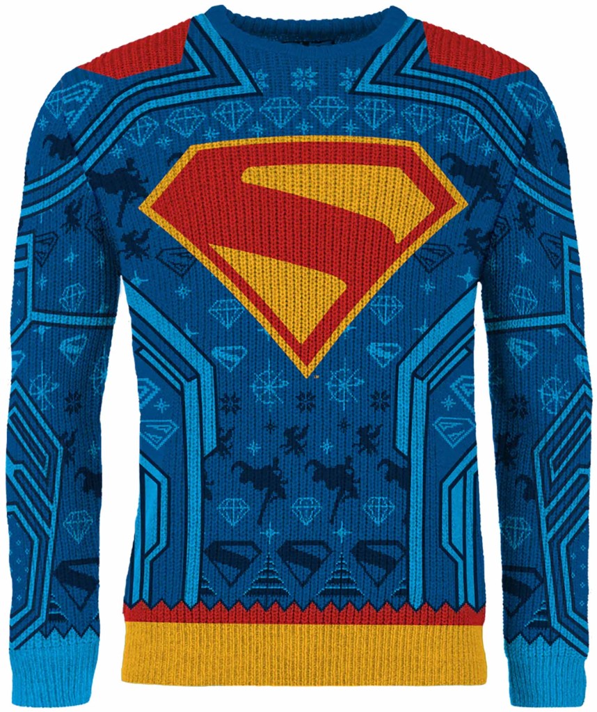 Who said you have to wear an โuglyโ sweater to the Ugly Sweater party? This festive Superman Christmas sweater is the perfect addition to a holiday wardrobe โ and for the whole winter season! The sweater features Supermanโs iconic emblem along with a fun winter motif. Itโs warm, itโs cozy, and itโs perfect for saving the season in style.