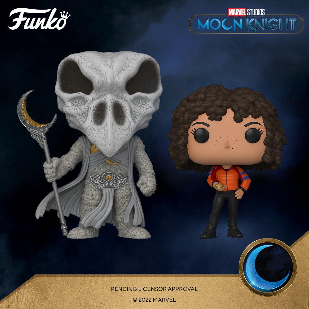 Marvel Studios’ Moon Knight Episode 3 “The Friendly Type” triggered a new wave of Funko Pop figures that included Khonshu, (F. Murray Abraham) the moon god who uses Marc Spektor (Oscar Isaac) as his avatar, and archeologist Layla El-Faouly (May Calamawy), Marc Spector’s wife. Pre-orders for both of these Pop figures are live here at Entertainment Earth now. A glow-in-the-dark variant of Khonshu is a BoxLunch exclusive that will be available to pre-order here soon.ย