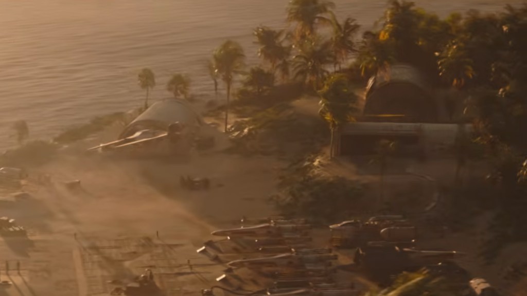 There’s a brief glimpse of the exterior of Adelphi Base, an important New Republic outpost on the galaxy’s Outer Rim. The New Republic Defense Fleet operates from this base, and it’s where Din goes to receive orders. It also seems to play an important role in the film’s plot – because it’s potentially a tempting target for the resurgent Empire.