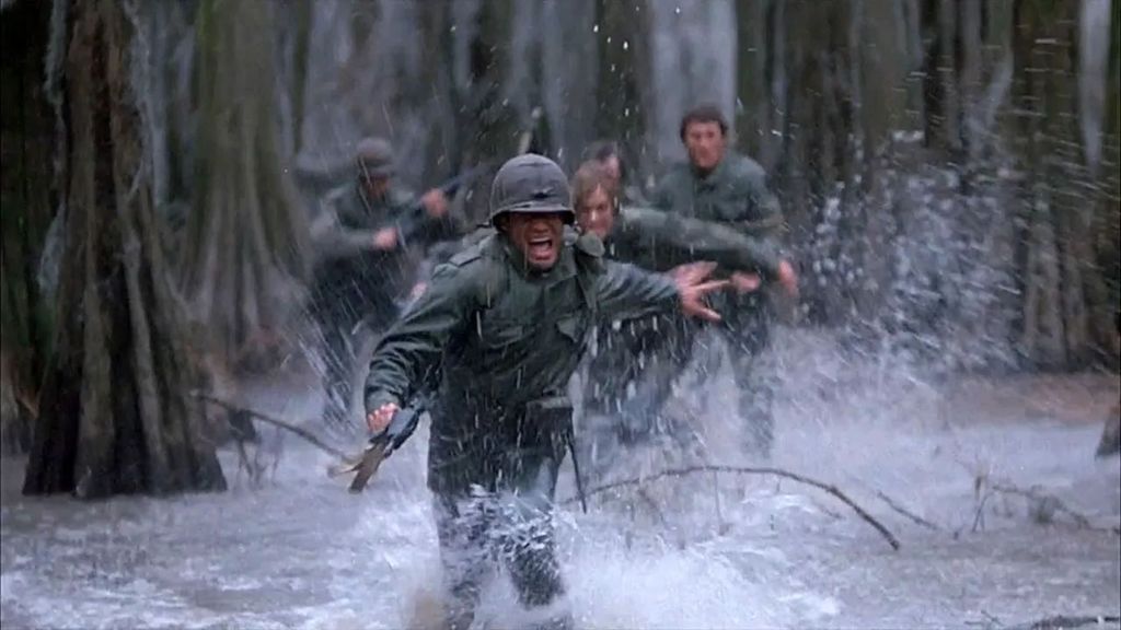 Walter Hill looks on the surface level like a war film, but it’s not. It’s more of a backwoods action thriller like Deliverance. The narrative follows a squad of Louisiana Army National Guard soldiers engaging in a training exercise in a nearby bayou. After they commandeer three pirogues (basically canoes) from some Cajun hunter-trappers and attempt to scare them by firing blanks, the Cajuns return live fire, kicking off a And Then There Were None style scenario, turning the squad’s training exercise into a fight for survival.