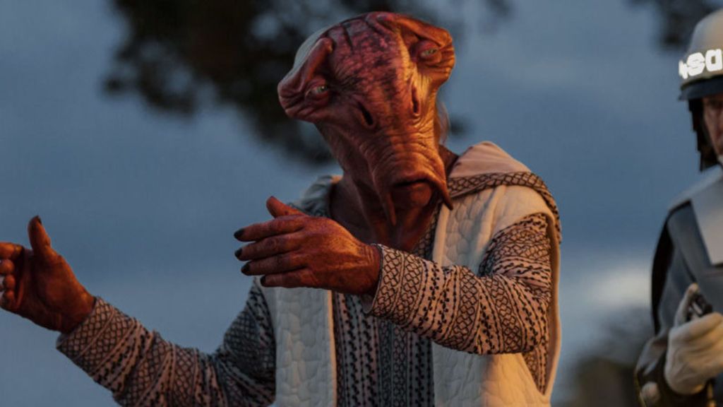 Considering he’s wearing a massive, very hot-looking costume and disguising his voice, you’d be fully forgiven for not knowing Unkar Plutt is, in fact, played by Star Trek and Shaun of the Dead‘s Simon Pegg. It makes sense, considering he’s a professed fan of the IP and had a working relationship with direct J.J. Abrams.
