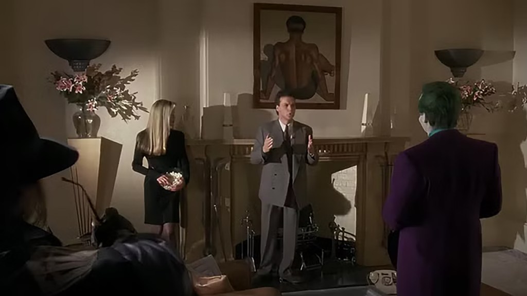 A big reveal in Batman is that it turns out that a young Joker was the man who killed Bruce Wayneโs parents in the tragic mugging after they left the theater, but the best part of that reveal is not that Bruce remembers that his parentsโ killer had said โdid you ever dance with the Devil by the pale moonlight?โ โ which is what the Joker says when he shoots Bruce in Vickiโs apartment. No, the best detail in that scene is that Vicki is eating popcorn.