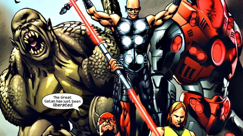 As for the members of the team themselves, The Colonel is a Muslim boy who became a super soldier to get revenge on Captain America after Cap led the invasion into Iran while another is Schizoid Man, whose name alone excludes him. However, a few of the Liberators have been adapted, albeit in version very different from what was seen in Ultimates. Specifically, Loki, Abomination, and Crimson Dynamo.