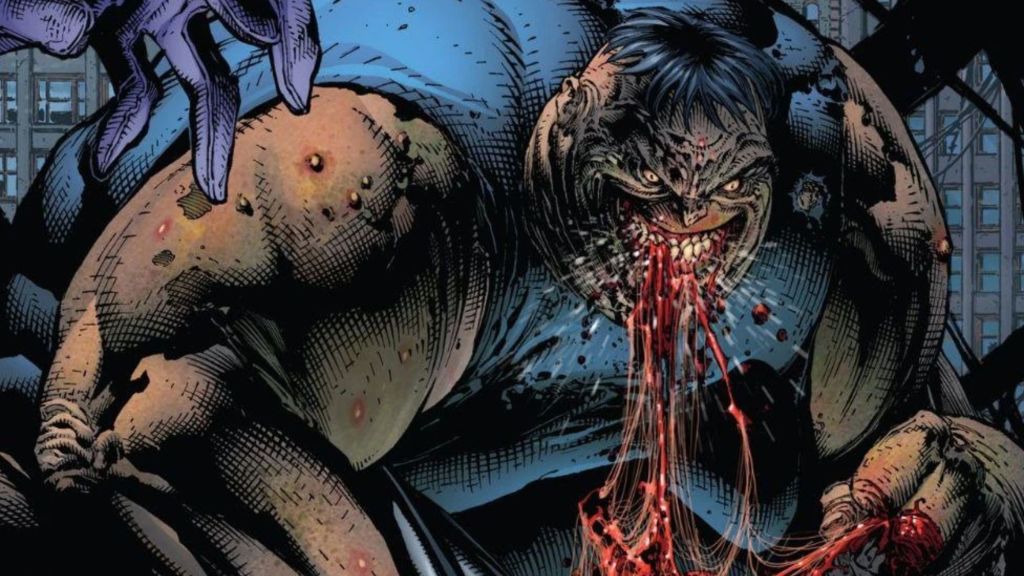 Then there’s something he did in Ultimatum. After a tidal wave pretty much annihilates New York City, a few Ultimates died, including the Wasp. Ultimate Blob ate her drowned corpse, dripping blood out of his mouth which, at that moment, was curved upwards in a smile. Hard pass on the MCU ever feeling the need to adapt that.