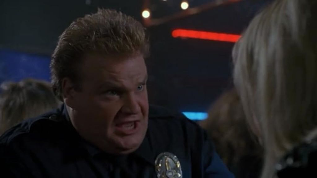 He gets about five minutes of screentime here, and as was seen in a movie we’ll get to later, that was more than enough for Farley to make a real impression. But here he’s basically a cop who struts around with false confidence, gets distracted, wash-rinse-repeat.