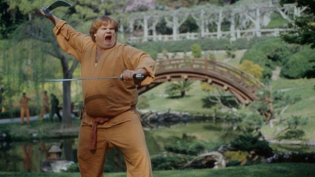 Beverly Hills Ninja is a tough one to unpack. On one hand it actually manages to capture some of that fish out of water feeling that was carried so effortlessly by Beverly Hills Cop. On the other, it’s just more of the same when it comes to what was expected out of a Farley vehicle. But, while it’s at best an average movie, it’s pretty important in the Farley filmography. For one, Farley plays Haru with a charming level of curiosity. He’s just a big kid in a gi with a smile on his face. And, while Farley himself cried after watching the movie (and not out of pride) he is fully responsible for what works about it.