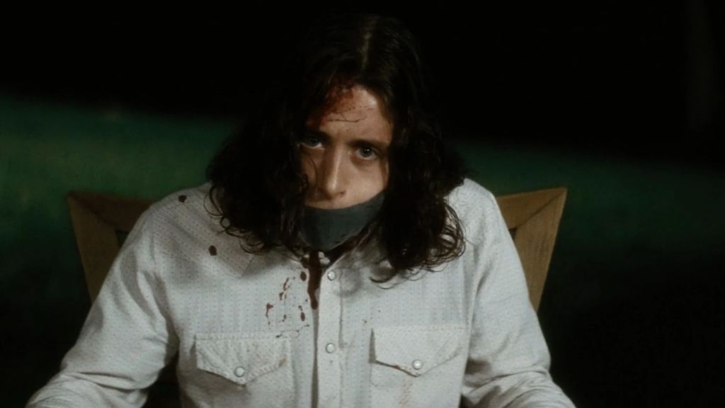 Mickey Altieri’s Ghostface reveal is another case of the surroundings playing a role in the overall scene’s impact. Scream 7 makes great use of a school theater but Scream 2 still has it beat. The music blares from within the building as Sidney runs back to the campus, she enters, Derek drops down, covered in marker drawings and tied up to a big prop cross, and the music stops. Then we hear the Ghostface voice, which shuts off and is replaced by Timothy Olyphant’s unmistakable voice asking Sidney, “Don’t ya know history repeats itself?” Cue the monologue that shows how Mickey is even more detached from reality than Billy and Stu.