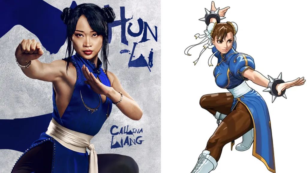 Chun-Li is one of the franchise’s most popular characters, and Callina Liang is a force to be reckoned with as the character in the early footage. From the games to the screen, the costume keeps the original suit’s blue theming, and the piercing blue actually to me looks a bit better in the movie version. There’s been a big change in the cut of the top, as gone are the puffy shoulders in favor of a sleeveless design.