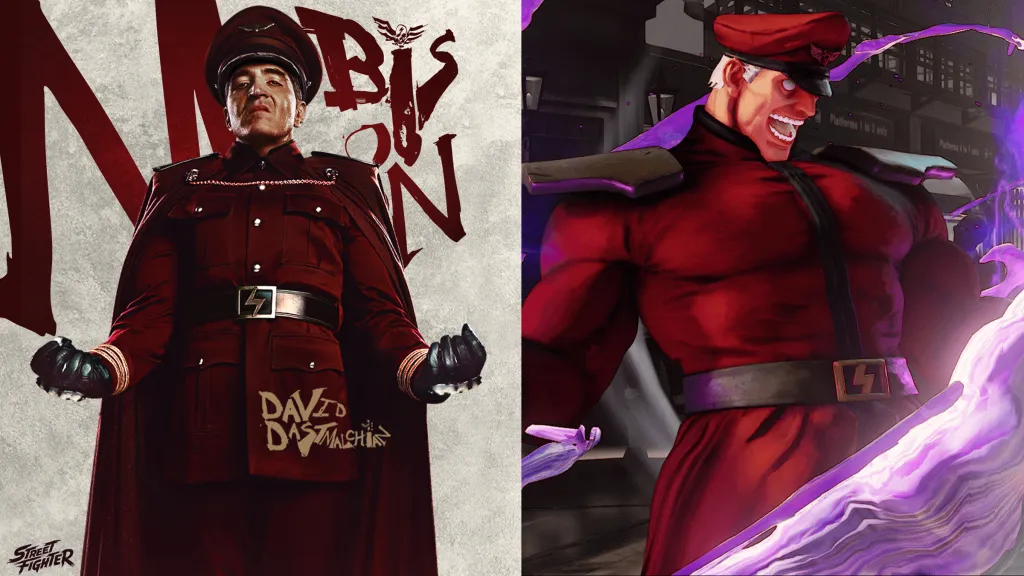 Dastmalchian’s version is less a spandex jacket with the black line down the middle and more of a military jacket, but the red color scheme remains. That’s coupled with a black belt, a gold belt buckle, and black gloves, as well as the trademark red and black hat. The bigger shoulder pauldrons are gone, but they are still worked into the cape and feel much more natural while still getting the look across. It appears the same villainous Bison that fans love from the games will carry his look into the live-action film for the second time around.