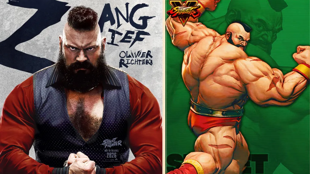Like Vega, this is one that could change depending on Zangief’s final form in the film, as the character’s original design is pretty straightforward. In the film, Olivier Richters is wearing a red shirt underneath a vest, with each one open in the middle. All of this is different from the standard game version, which is just a gold belt, red trunks, and gold and red wristbands and boots.