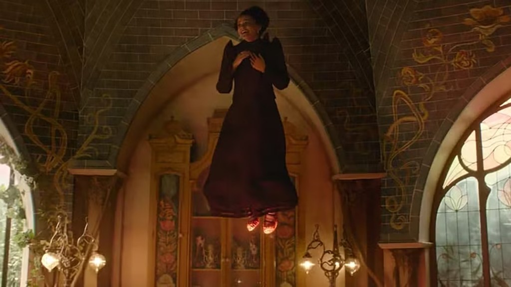 This change from stage to screen works very well. In fact, it may actually be better than the stage version where Nessaโs enchanted shoes make her walk. The shift grounds things in a more emotional and therefore fleeting desire, which makes everything that happens next all the more devastating and tragic and, ultimately, makes Nessaroseโs fate somehow more painful. It makes a lot of sense and is a change that we frankly wish had been in the original musical from the very beginning.