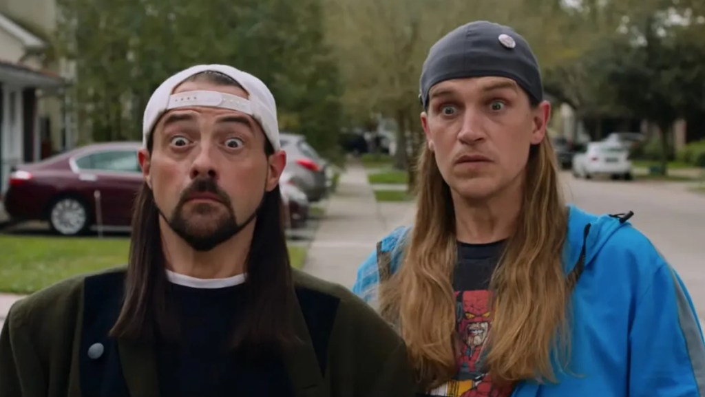 The title of the film already indicates a lot. Jay and Silent Bob have been dynamic characters with a big arc in Smith’s films. They’ve also often served as symbolic or metaphorical figures, reflecting changing times in the world, or phases in the director’s life, most often illustrated by “Silent” Bob’s standalone moments giving sage-like monologues. Clerks III (2022) was Smith’s unabashed rumination on his own near-death experience and new reality as a middle-aged man, but it also had a funny subplot joke about Jay and Silent Bob’s place in the changing world.