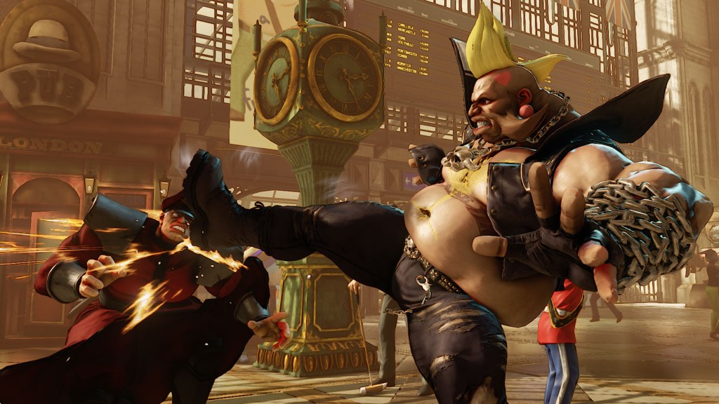 Next, we’re moving to 1995’s Street Fighter Alpha and the powerful oddball known as Birdie. Birdie stands out immediately thanks to his tall stature, rocker outfit with a large chain, and even taller blonde mohawk, and while that look has changed in a variety of ways in different games, the main elements have remained the same.