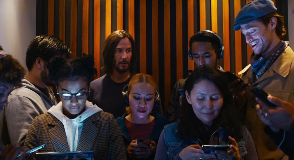 Previous versions of the Matrix were constructed out of mathematical precision to keep people’s minds in check and, even with the anomaly of “The Cycle of The One,” there was an opportunity to break free. The new version of The Matrix relies more on an emotional response to the simulation than its predecessor. In other words, it focuses on engagement, just like Facebook, Twitter, Instagram, TikTok, etc. The new version of The Matrix is concerned with manipulating the minds of those within it by appealing to their feelings rather than feeding them facts. (Sound familiar? Have you been on Twitter in the past 6 years?) This change is stated outright by The Analyst, but also observable in the film as Keanu Reeves’ Neo finds himself awash in a sea of people hooked to their smartphones.
