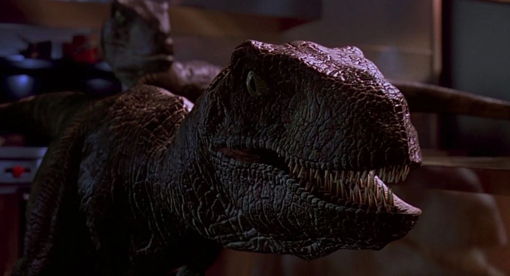 Jurassic Park keeps the Velociraptors mostly hidden from view until the third act while they are spoken about with hushed, legendary reverence by Dr. Alan Grant. Jurassic Park’s game warden Robert Muldoon (Bob Peck) discovers firsthand just how effective the Raptor’s hunting tactics are later on. Trying to shoot one Raptor from a distance, Muldoon is suddenly confronted by another from the side. Acknowledging the Raptor as a “clever girl,” Muldoon ultimately isn’t able to turn his weapon to his new dino attacker in time.