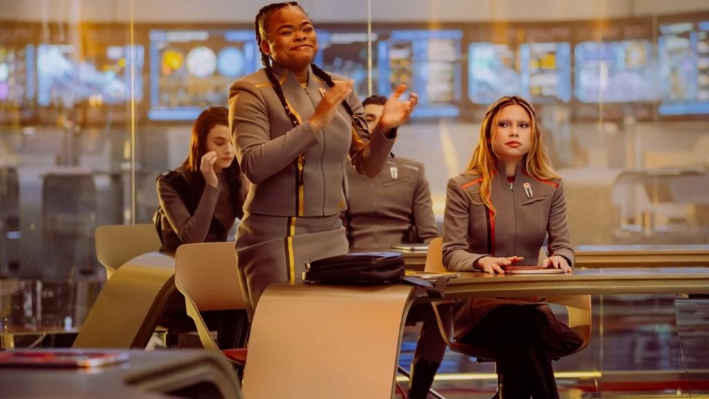 Episode 8 “The Life of the Stars”, features the triumphant return of Discovery’s Sylvia Tilly, (Mary Wiseman) who is called upon to help the struggling cadets process their emotions after the fall out of the attack on the Miyazaki under the guise of helping them be better Captains and future Starfleet leaders (since teenagers aren’t exactly renowned for opening up about their feelings). To help them process their shock and grief, she resorts to what, to the cadets, seems like an unorthodox method for helping them develop what it takes to become a Starfleet officer — a theatre class.