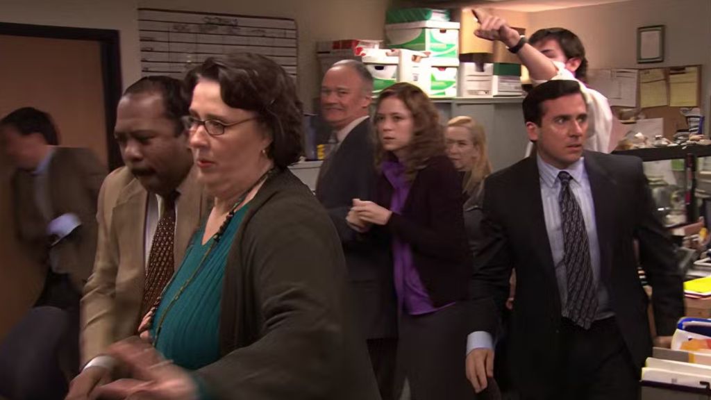 And the scene is even better because of how hard it is to keep up with everything happening at once. Each character reacts exactly the way the audience expects โ just much worse. Kevin (Brian Baumgartner) tries to break open a vending machine to grab snacks, Angela (Angela Kinsey) throws her cat into the ceiling, and Oscar (Oscar Nuรฑez) attempts to crawl out through the office vents. All unfolds within minutes; the situation escalates way too quickly for anyone to regain control. It’s the kind of sequence that perfectly captures why the sitcom became such a huge TV milestone and gained such a massive fanbase.