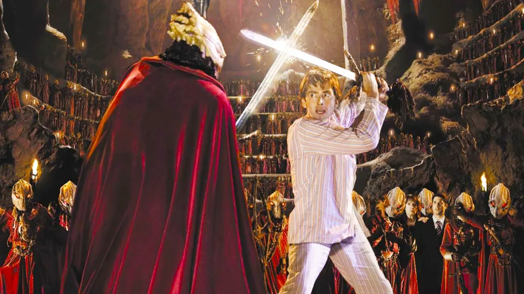 After a brief appearance in “The Parting of the Ways,” 2005’s Christmas special, “The Christmas Invasion,” marked David Tennant’s first story as the Tenth Doctor. This episode incapacitated the Doctor, showing the detrimental effects of regeneration really for the first time in Doctor Who’s history, which was an interesting addition to Time Lord lore. Unfortunately, this meant that Tennant didn’t do much in “The Christmas Invasion,” which was a strange choice for his first adventure. When he did wake up, he was brilliant, and his battle against the Sycorax leader (Sean Gilder) is iconic, but we wanted more.
