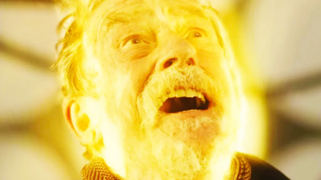 With little flash and next to no special effects, William Hartnell’s departure from Doctor Who and the series’ first ever regeneration in 1966 was a revelatory moment. The First Doctor regenerated after a battle against the Cybermen in “The Tenth Planet,” and, retroactively, after meeting the pilots aboard the Testimony in “Twice Upon a Time.” In reality, Hartnell’s deteriorating health forced Doctor Who’s creators to come up with a way to continue the show with a new actor in the role, and this was one of the first overt examples of the Doctor showing off his alienness. This is one of TV’s most memorable moments, though is missing some of the flash of latter regenerations.