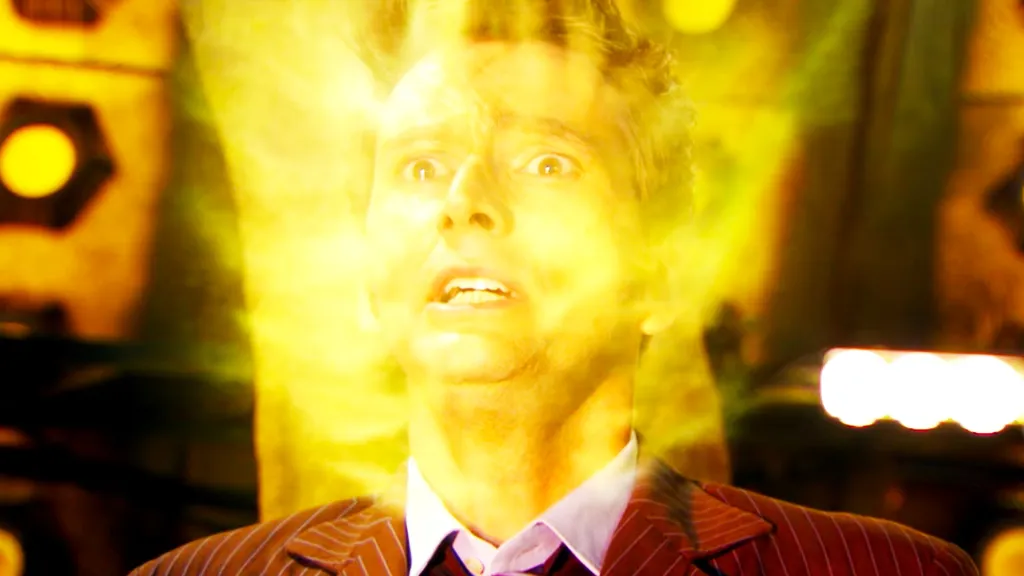 By today’s standards, the Ninth Doctor’s regeneration in “The Parting of the Ways” is underwhelming. However, seeing the Doctor regenerate with the now-signature yellow energy for the first time on-screen was a huge moment in the history of the show. The Doctor had never regenerated in this way, but the revival of Doctor Who made regeneration a much bigger dealโand eased the CGI change from one actor to another by hiding key areas with hazy energy. The Doctor sacrificed his ninth iteration to save Rose Tyler by absorbing the power of the Heart of the TARDIS from her, so, despite behind the scenes issues between production and Eccleston, this regeneration scene was still fantastic.