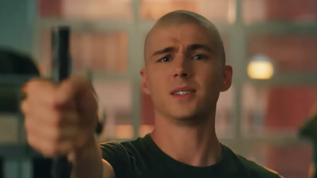 The comedy series Boots was released on Netflix on October 9, 2025; it was subsequently cancelled on December 12, 2025. The show was based on the memoir The Pink Marine by author Greg Cope White, and is set in 1990, where queer teenager “Cameron Cope” (Miles Heizer) is living a closeted life in Louisiana. When Cameron’s best friend, Ray McAffey (Liam Oh), decides to join the Marines, Cameron enlists alongside him. The problem is that at that time, queer individuals were not allowed to serve in the military, forcing Cameron to keep his sexual identity a secret as he tries to get through basic training and duck the watchful eye of his drill instructor, Sergeant Liam Robert Sullivan (Max Parker). Along the way, Cameron meets and bonds with other recruits who are being pushed to the brink (in every sense) but the brutal military training.