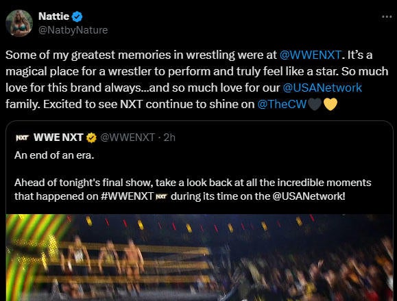 The B.O.A.T. also got in on the tributes, saying that some of her greatest memories in wrestling were part of NXT. Natalya said “It’s a magical place for a wrestler to perform and truly feel like a star”, and said she has “so much love for this brand always”, while also being excited for what the future holds on The CW.
